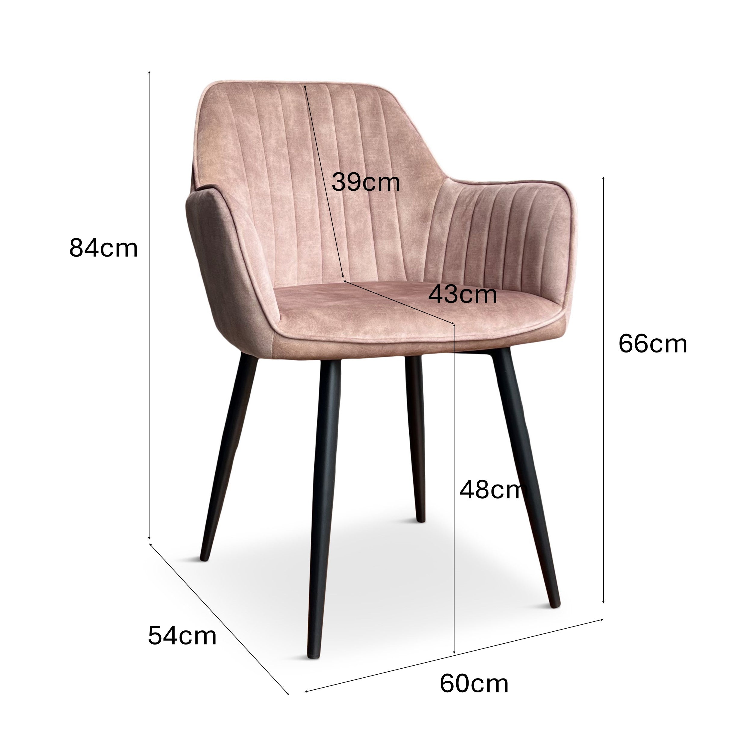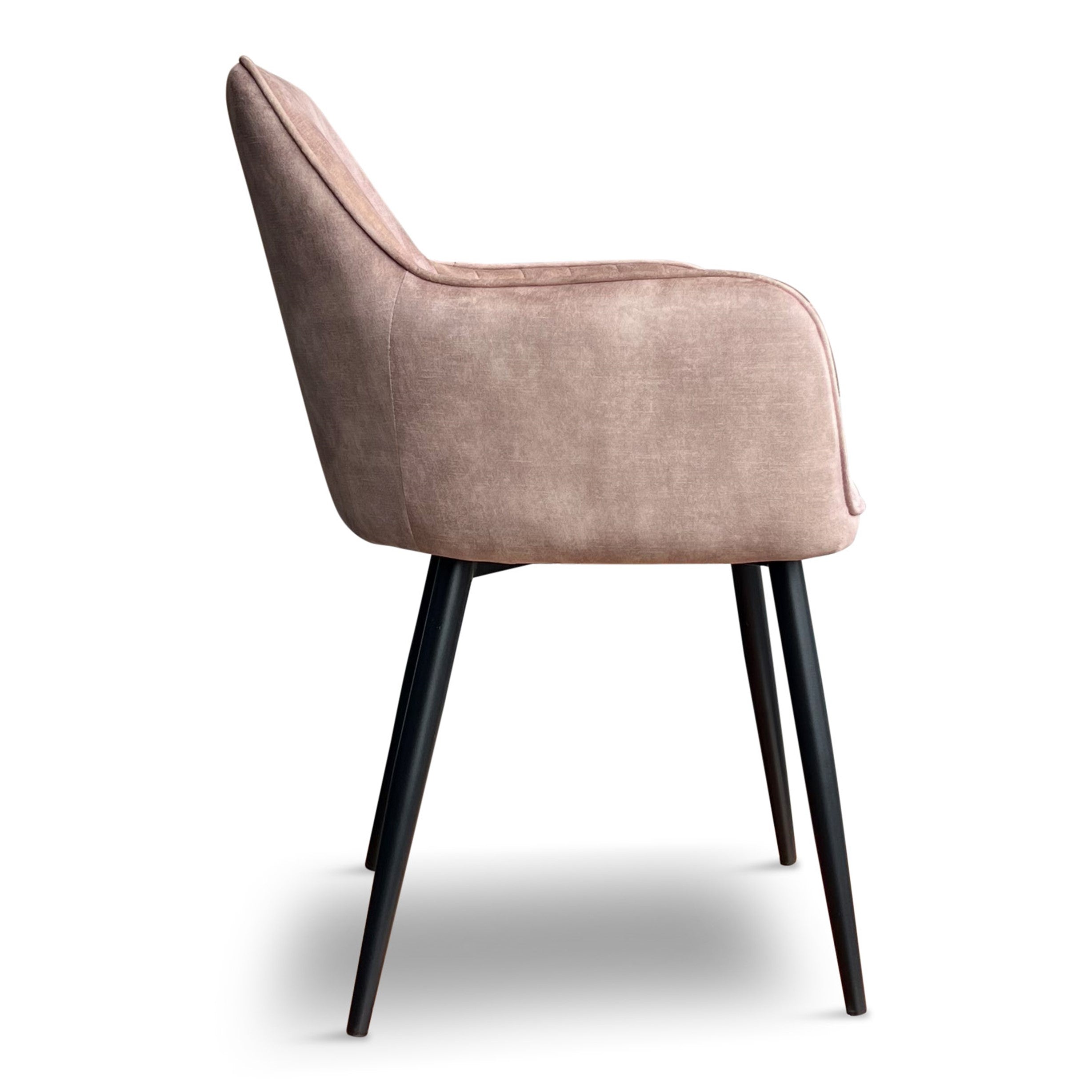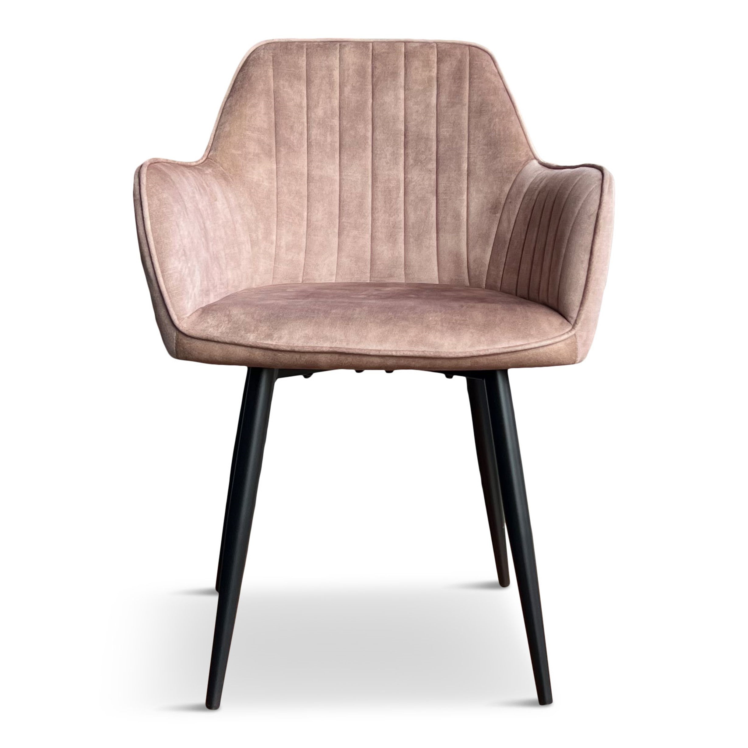 Eetkamerstoel Jeffrey brengt luxe en comfort samen in één stijlvol design. De fluweelzachte bekleding in taupe voelt heerlijk aan en geeft je interieur een warme, elegante uitstraling. Het zwarte metalen onderstel maakt de stoel stevig én modern, waardoor hij moeiteloos in verschillende woonstijlen past.