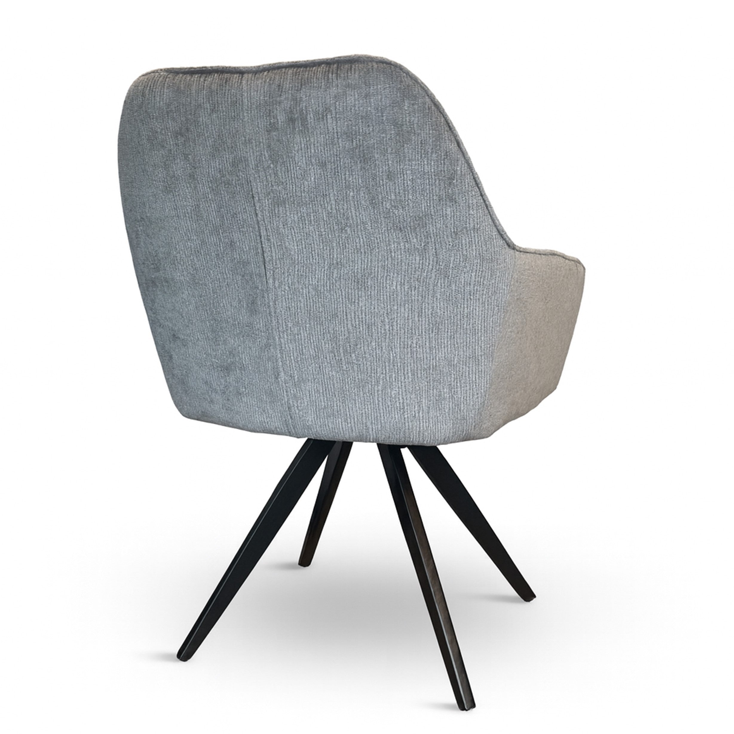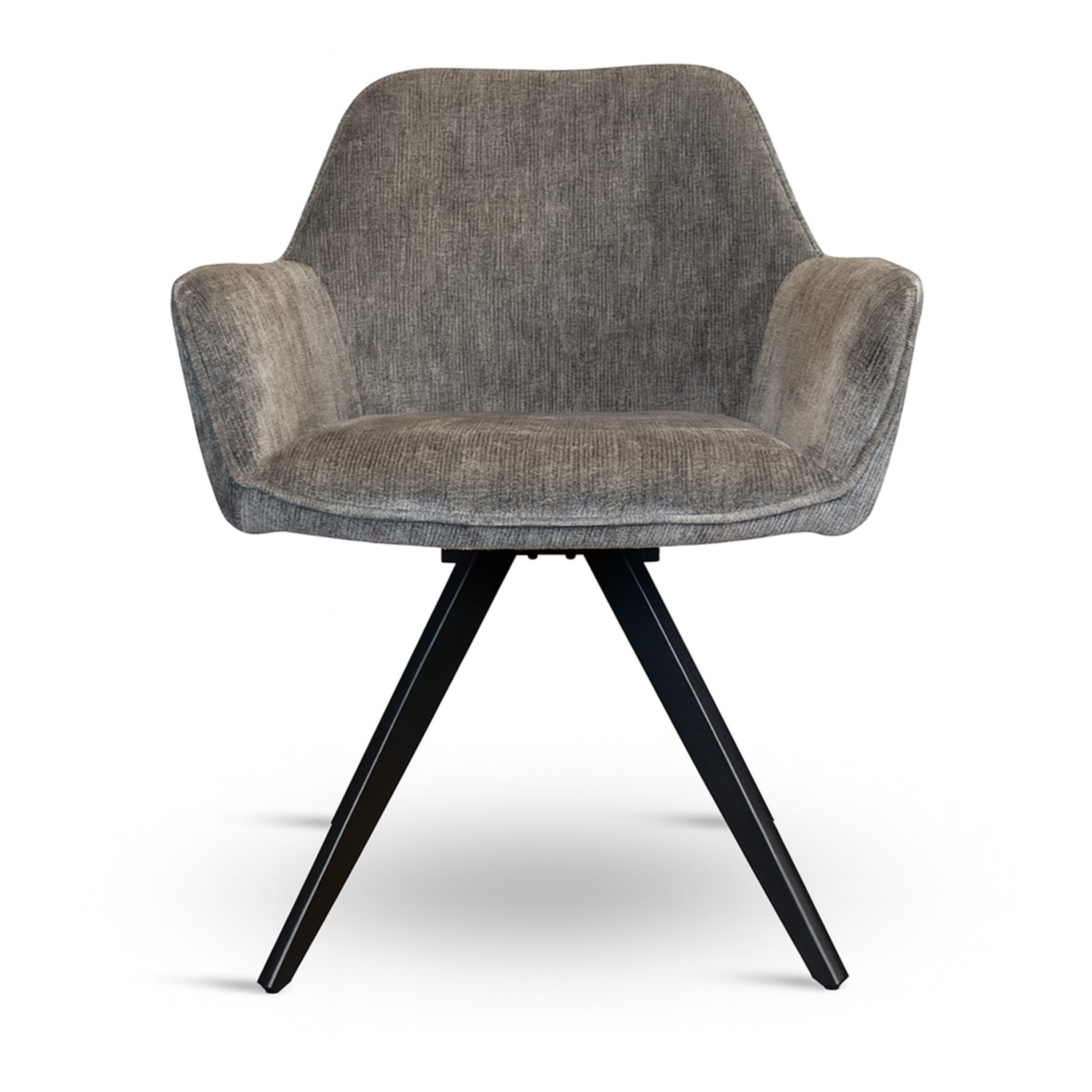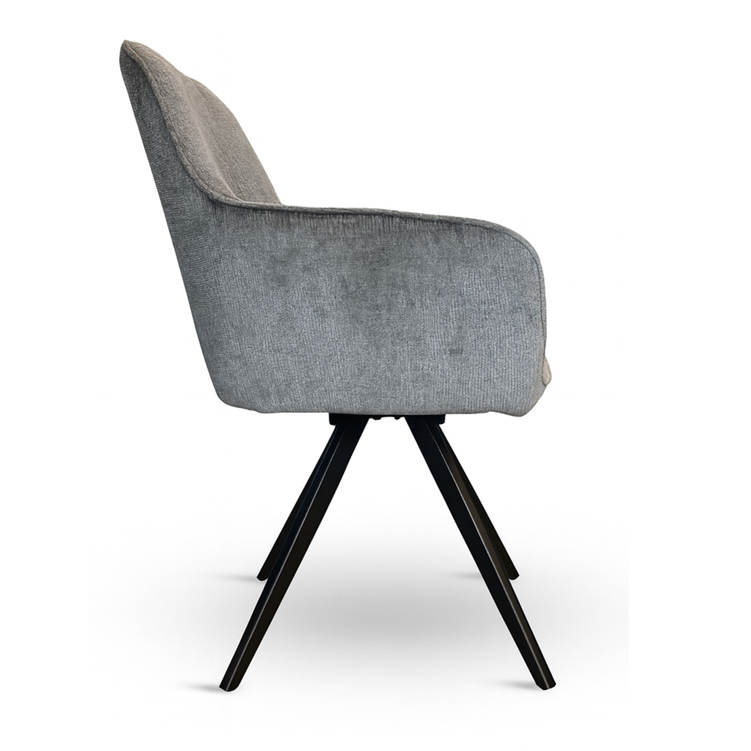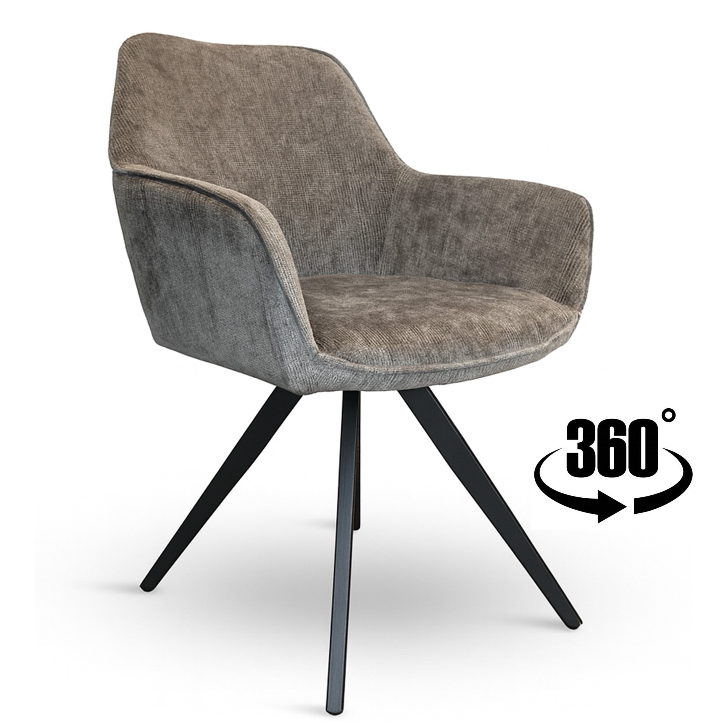 Eetkamerstoel Marseille is een perfecte combinatie van comfort en stijl. De zachte Fuse bekleding in antraciet zorgt voor een warme en luxe uitstraling, terwijl het zwarte metalen onderstel de stoel een moderne en stoere look geeft. Dankzij het 360° draaimechanisme biedt Marseille extra gemak en flexibiliteit aan tafel.
