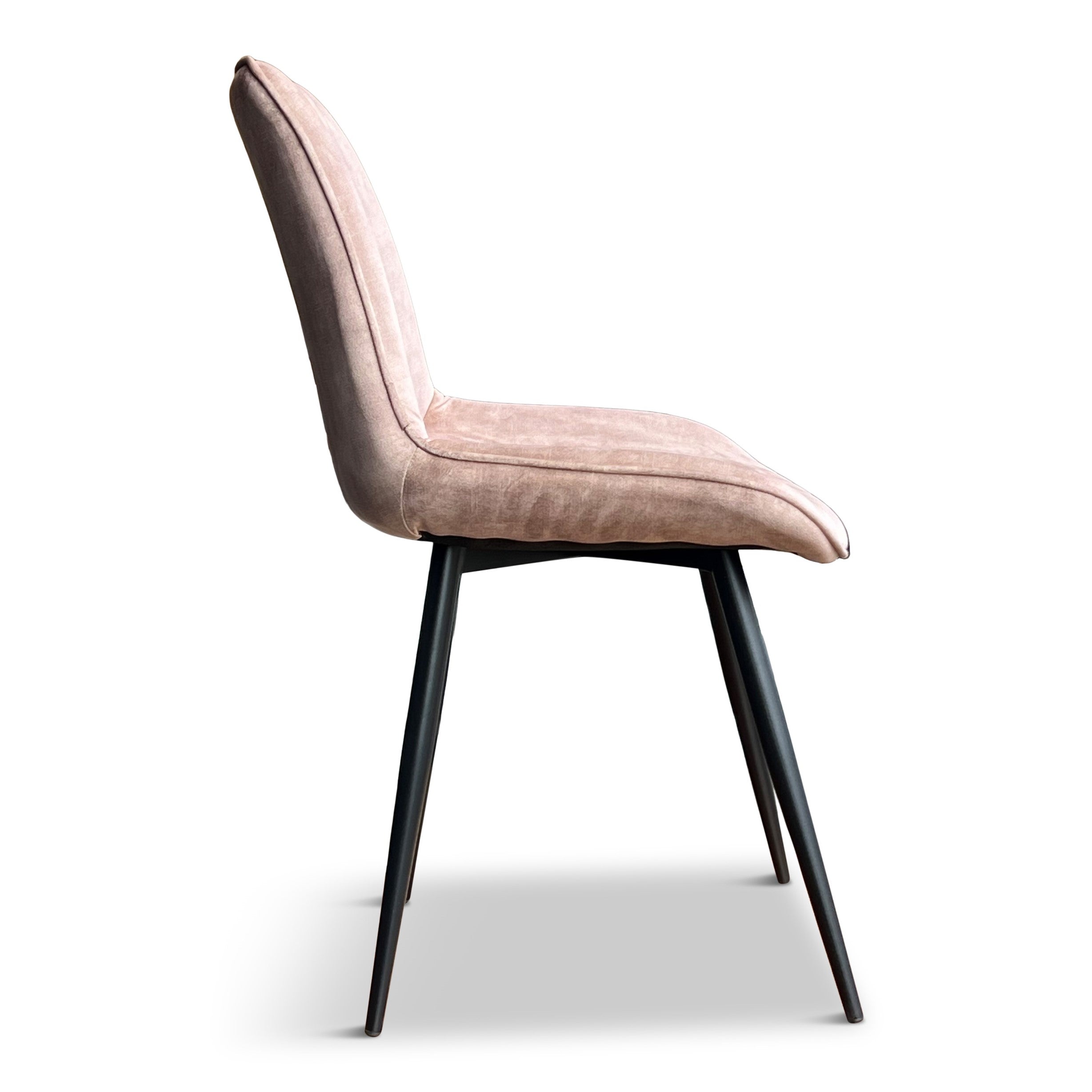 De Winston eetkamerstoel combineert stijl en comfort. Bekleed met zachte velvet in de chique kleur taupe straalt deze stoel luxe en warmte uit. De slanke, zwarte metalen poten zorgen voor een moderne uitstraling en bieden uitstekende stabiliteit.