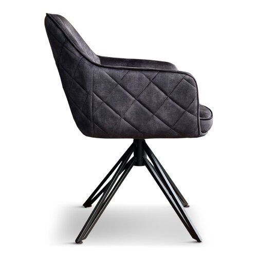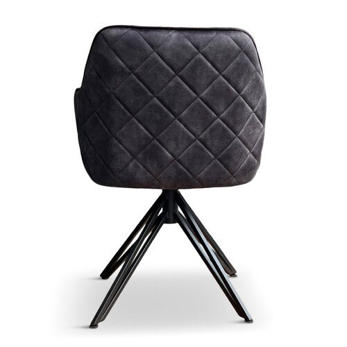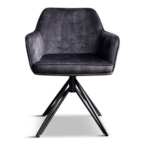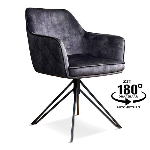 Eetkamerstoel Dijon combineert moderne elegantie met optimaal comfort. De zachte fluwelen bekleding in antraciet geeft de stoel een luxe en chique uitstraling, terwijl het zwarte metalen onderstel zorgt voor stabiliteit en een eigentijdse look. Extra handig: Hartford is 180° draaibaar met auto-return, waardoor de stoel altijd automatisch terugdraait naar zijn oorspronkelijke positie.