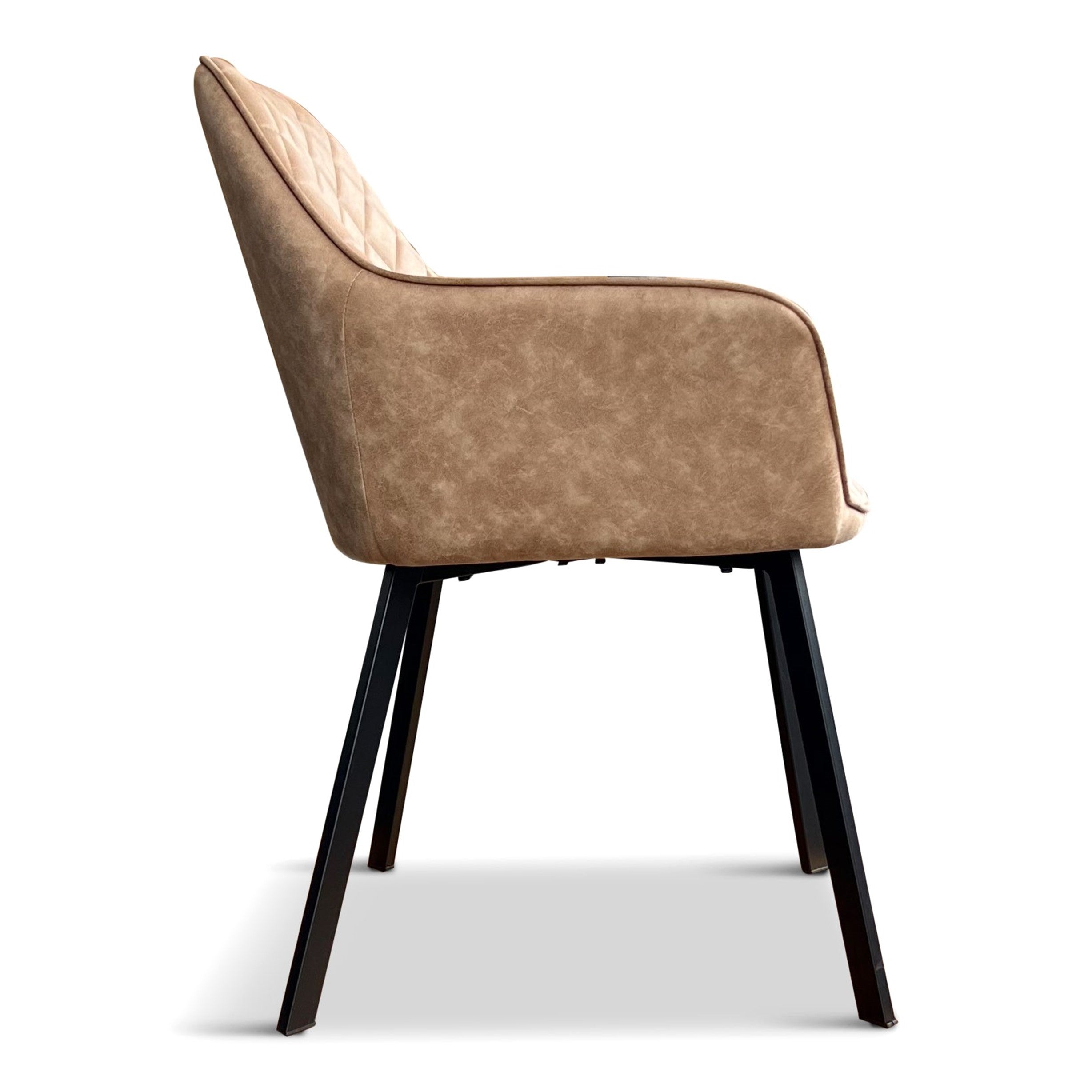 Eetkamerstoel Lyon is een stijlvolle mix van stoer en comfortabel. De microvezel bekleding in het lichtbruin geeft de stoel een moderne, industriële look, terwijl de zachte stof tegelijk warmte en gezelligheid uitstraalt. Het zwarte metalen onderstel zorgt voor stabiliteit en een strakke afwerking, waardoor Lyon perfect aansluit bij uiteenlopende interieurstijlen.