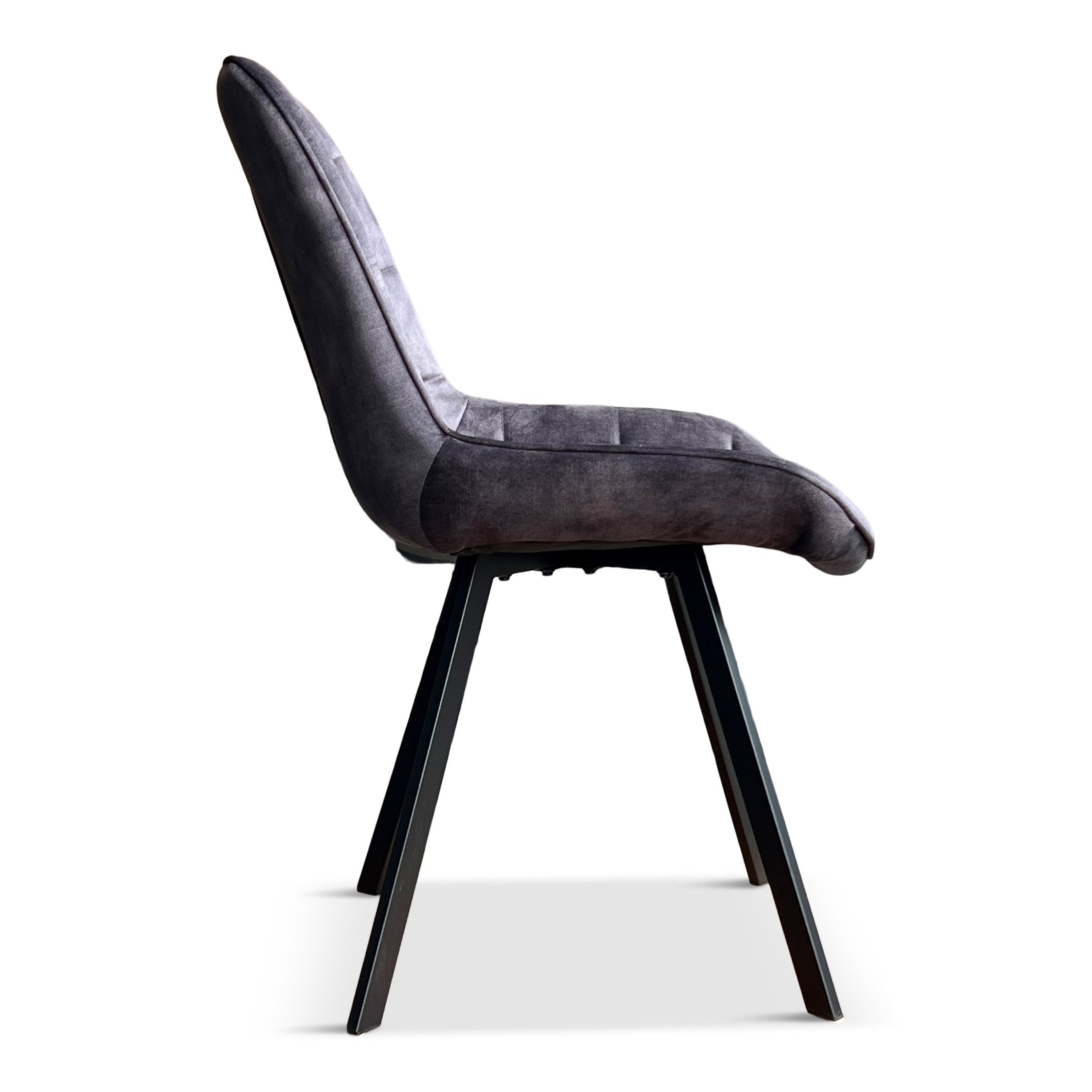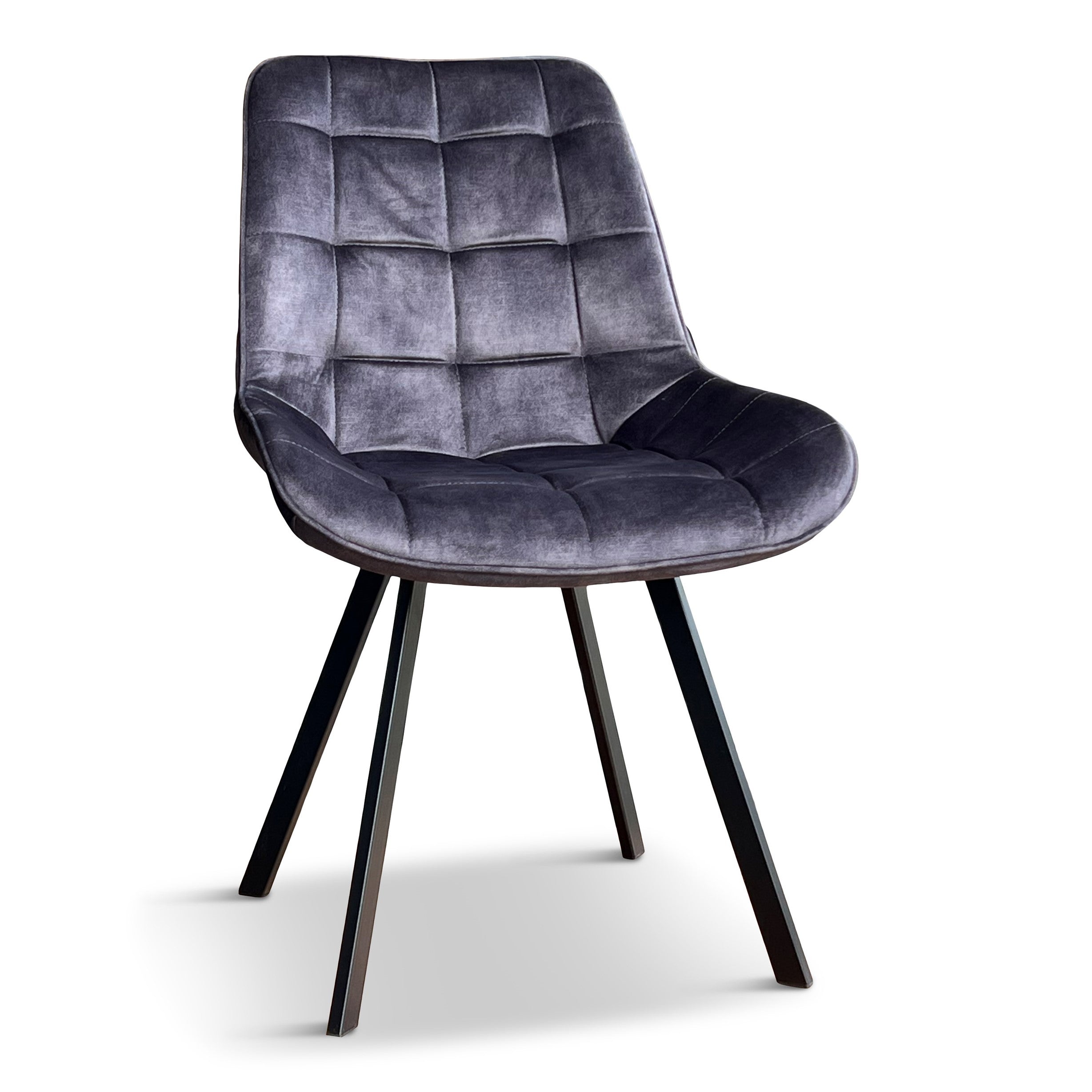 De Denise eetkamerstoel combineert stijl en comfort. Bekleed met zachte velvet in de chique kleur antraciet straalt deze stoel luxe en warmte uit. De slanke, zwarte metalen poten zorgen voor een moderne uitstraling en bieden uitstekende stabiliteit.