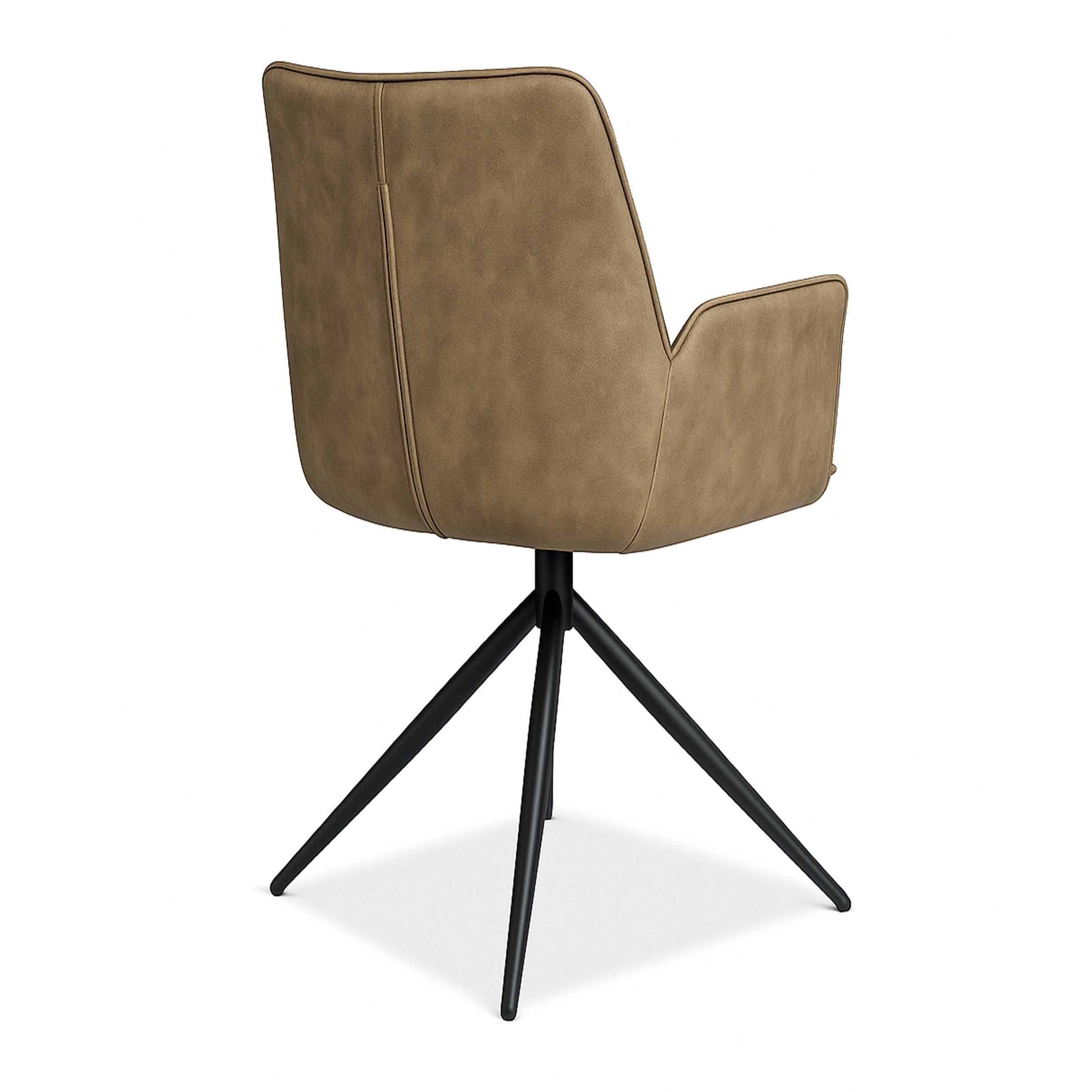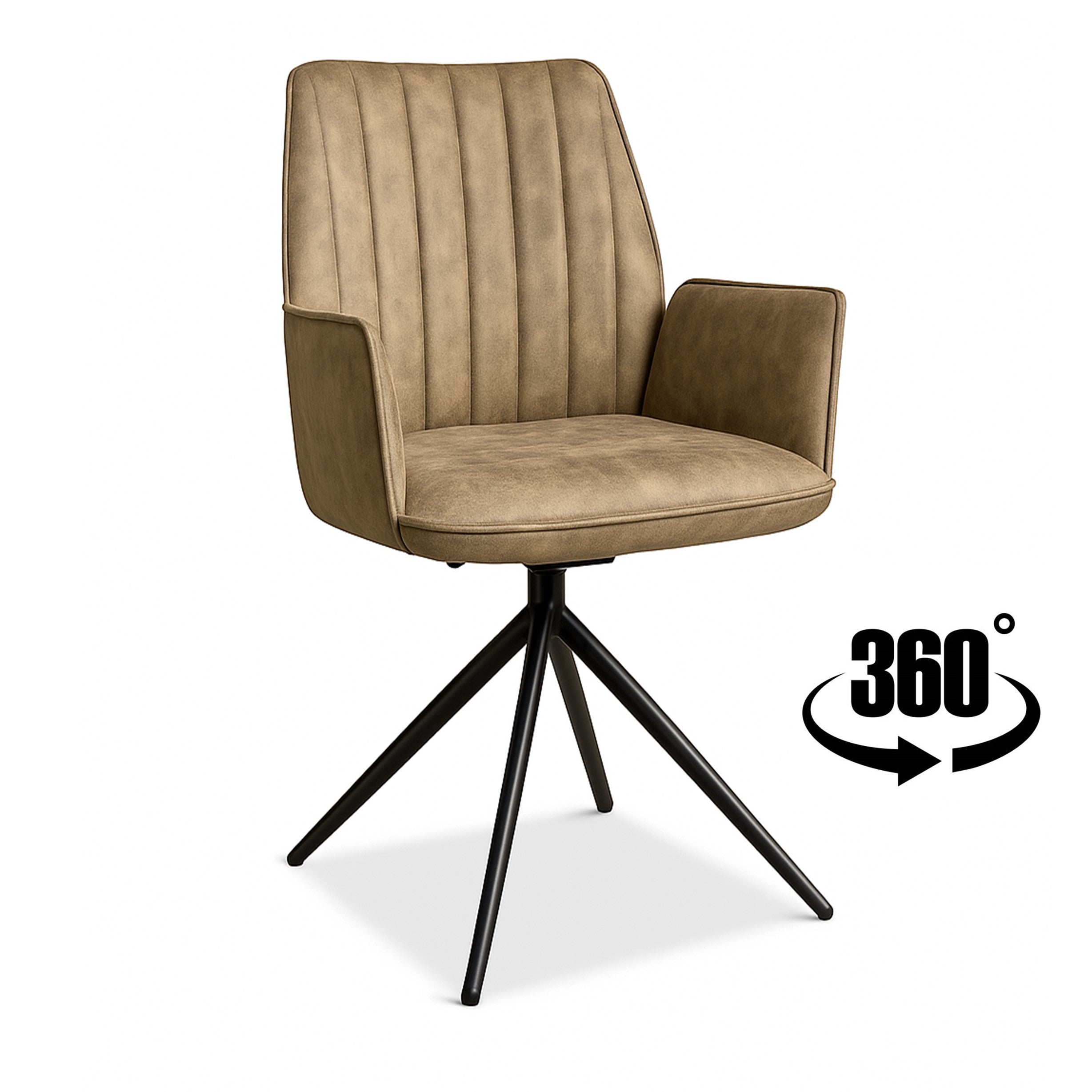 Eetkamerstoel Nautes combineert modern design met optimaal zitcomfort. De zachte microvezel bekleding in hunter geeft de stoel een luxe en warme uitstraling, terwijl het zwarte metalen onderstel zorgt voor een stevige en stijlvolle basis. Dankzij het 360° draaimechanisme geniet je van extra gemak en bewegingsvrijheid aan tafel.