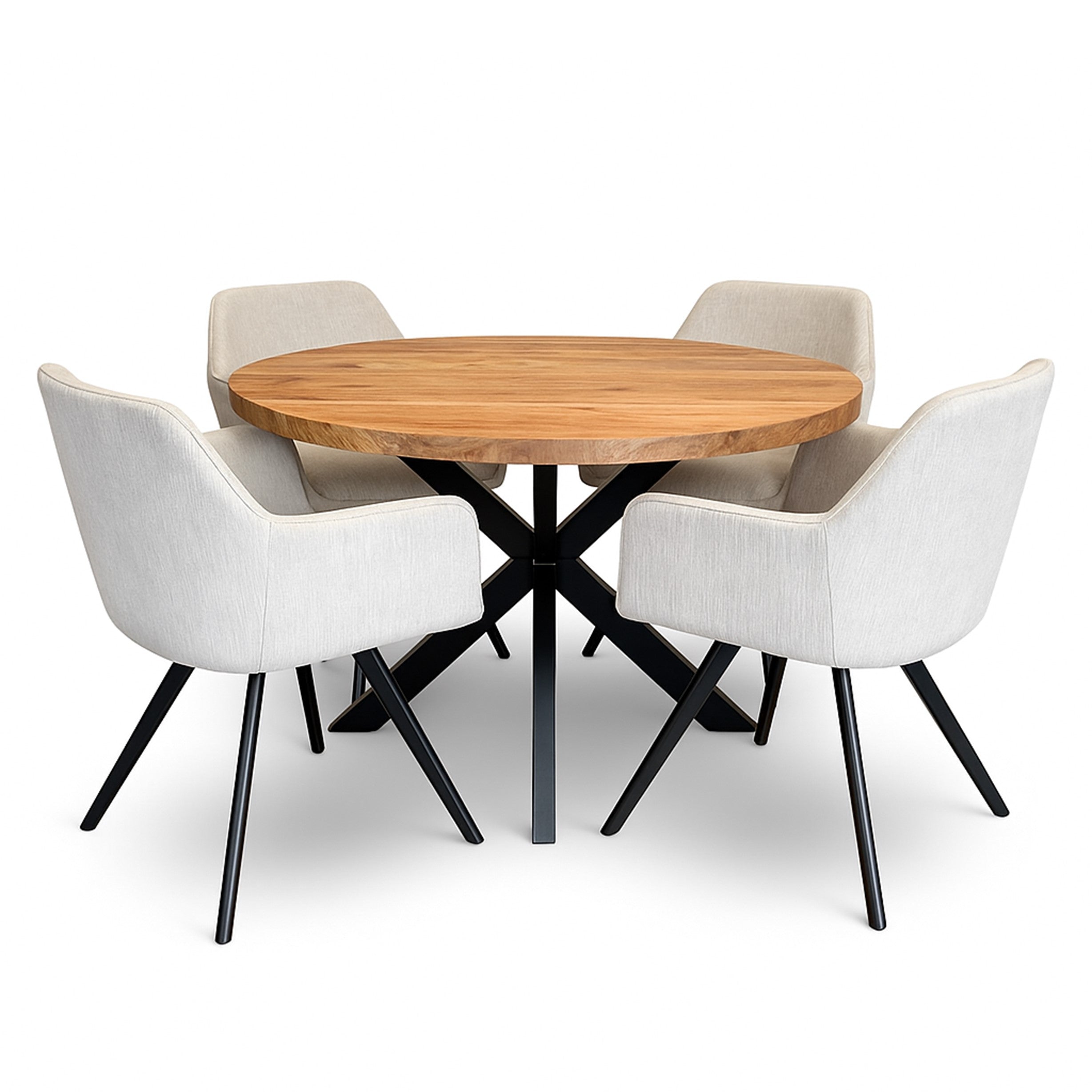 Eettafel Jasper Ø120cm + 4x Marseille Silver